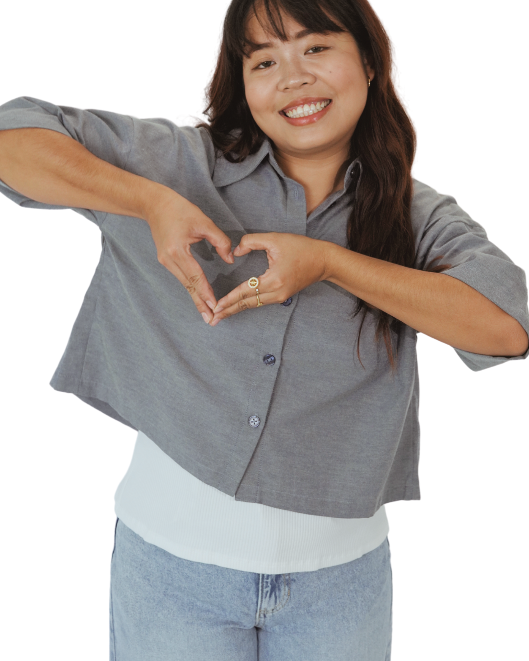 These boxy shaped button up shirts are made of linen and have a simple fold in the middle of the back. This design looks profession and fits well.